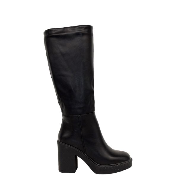 Μπότα με χοντρό τακούνι. Κλείνει με φερμουάρ.