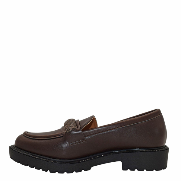 Loafer με αγκράφα και στρας. Διαθέτει χοντρό τακούνι.