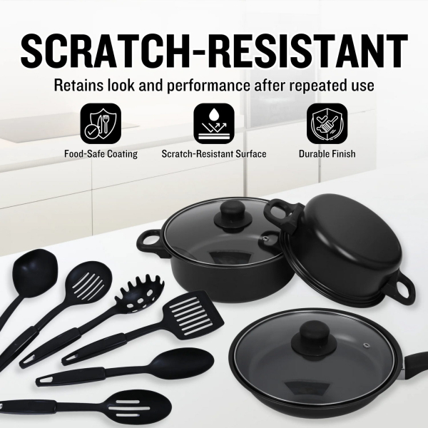 Σετ αντικολλητικές κατσαρόλες,τηγάνια και μαγειρικά σκεύη.Πυρήνας από χυτοπρεσαριστό αλουμίνιο με κεραμική επίστρωση και επαγωγικό πάτο.