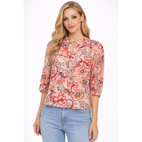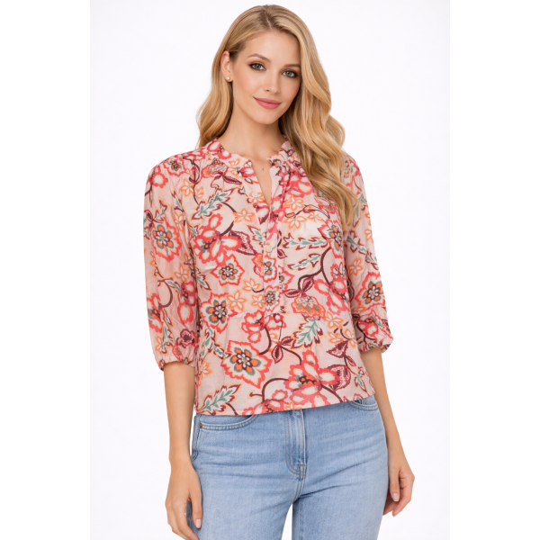 Μπλούζα κοντομάνικη εμπριμέ . Κανονική εφαρμογή.