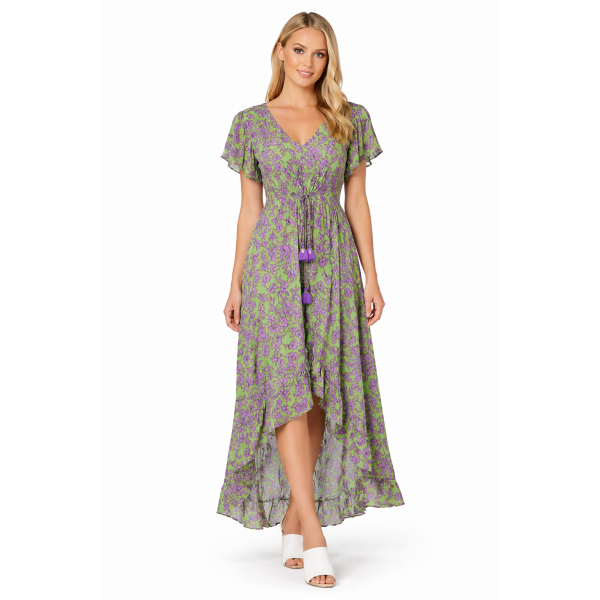 Φόρεμα κοντομάνικο maxi . Κανονική εφαρμογή.