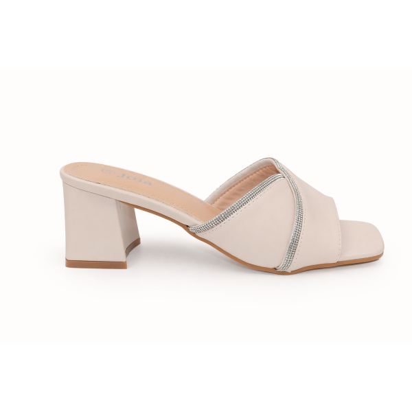 Mules με τετράγωνη μύτη και χοντρό τακούνι μεσαίου ύψους .
