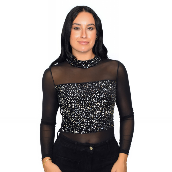 Κορμάκι μακρυμάνικο με διαφάνεια. Κανονική εφαρμογή.