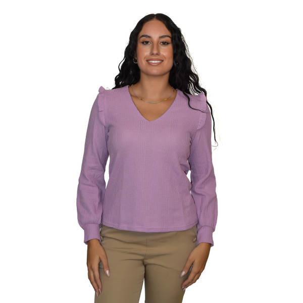 Μπλούζα μακρυμάνικη ριπ με V-λαιμόκοψη. Κανονική εφαρμογή.