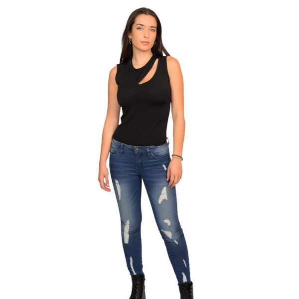 Παντελόνι denim με τσέπες. Κλείσιμο με κουμπί και φερμουάρ. Κανονική εφαρμογή.