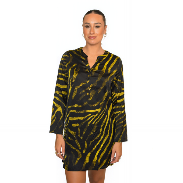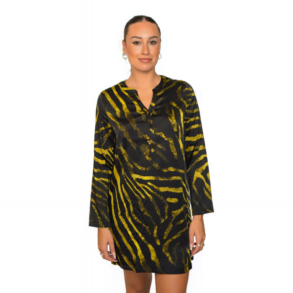 Φόρεμα mini μακρυμάνικο εμπριμέ. Κανονική εφαρμογή.