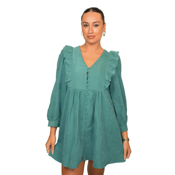 Φόρεμα μίνι με κουμπιά. Κανονική εφαρμογή.