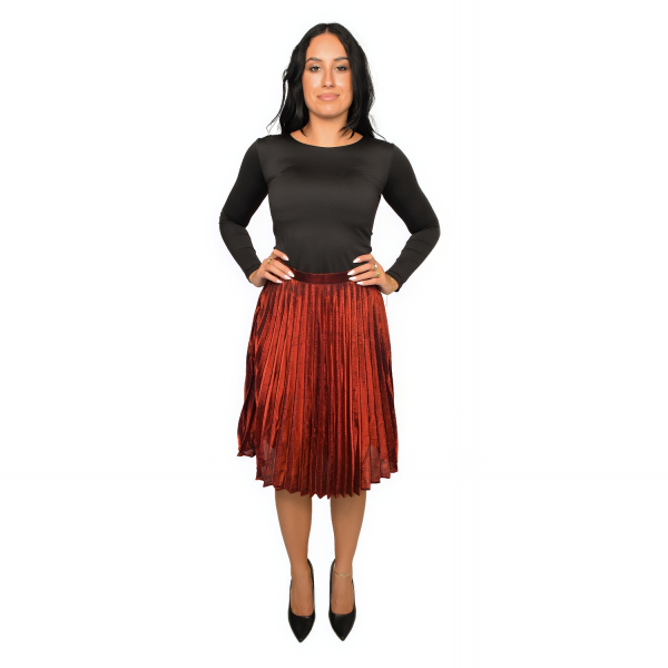 Midi φούστα πλισέ με λάστιχο στη μέση. Κανονική εφαρμογή.