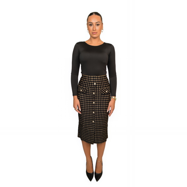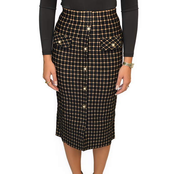 Midi φούστα με κουμπιά. Κανονική εφαρμογή.