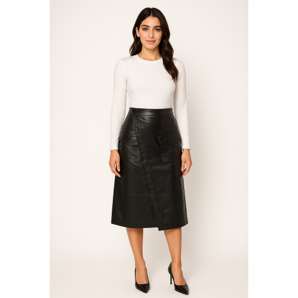 Midi φούστα με κουμπί. Κανονική εφαρμογή.