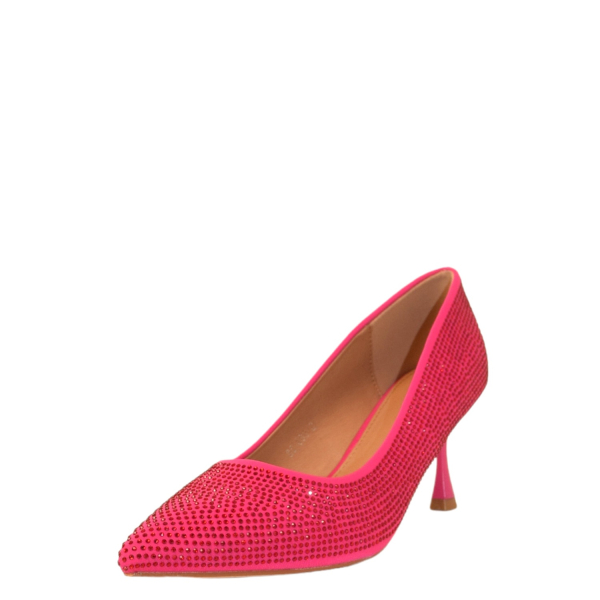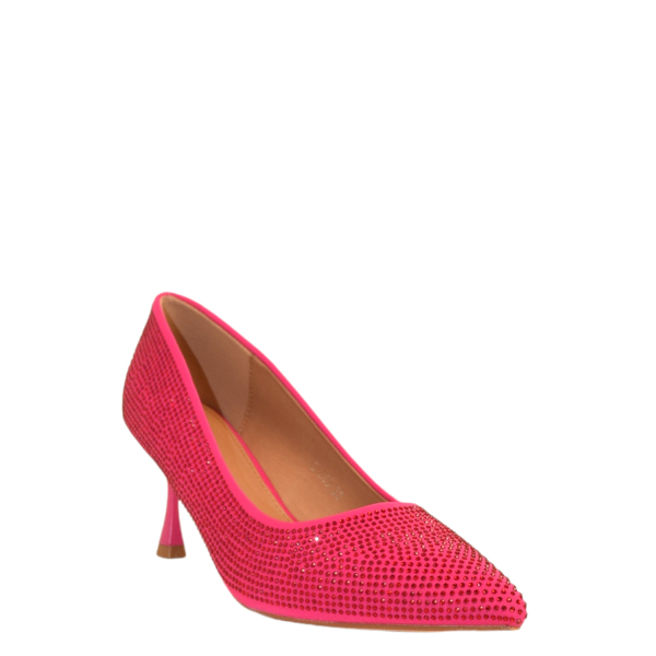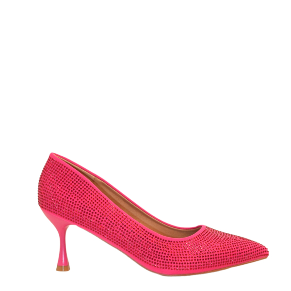 Γόβα μυτερή ψηλοτάκουνη με strass. Διαθέτει λεπτό τακούνι.
