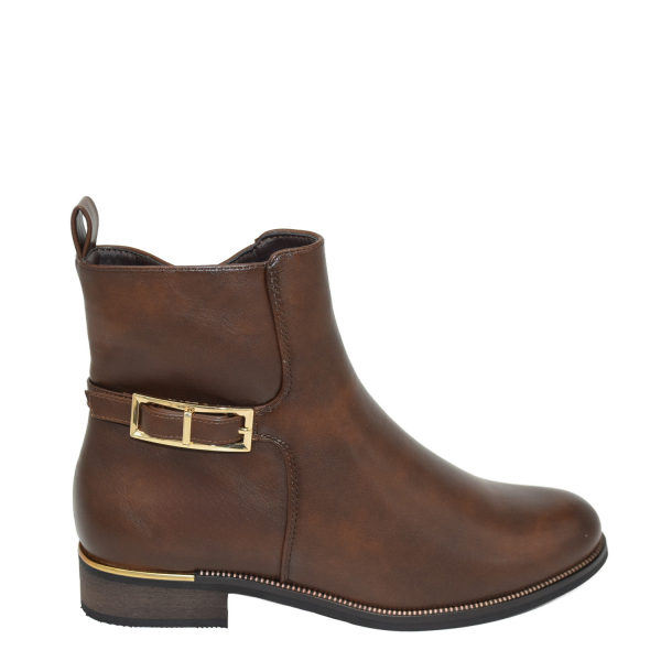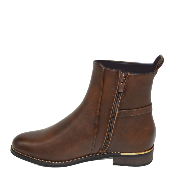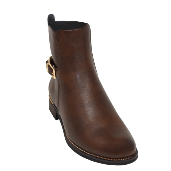 Μποτάκι με χρυσές λεπτομέρειες. Διαθέτει χοντρό τακούνι. Κλείνει με εσωτερικό φερμουάρ.