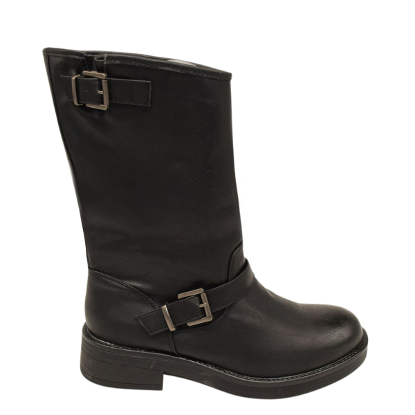 Μποτάκι δερματίνη με αγκράφες. Διαθέτει χοντρό τακούνι.