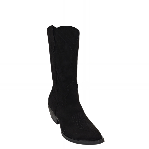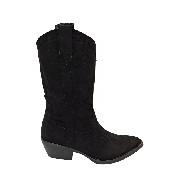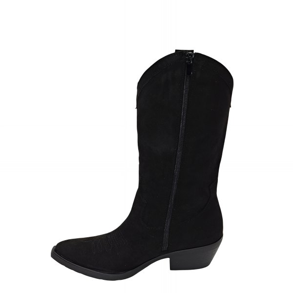 Μποτάκι σουέντ western. Διαθέτει χοντρό τακούνι. Κλείνει με φερμουάρ.
