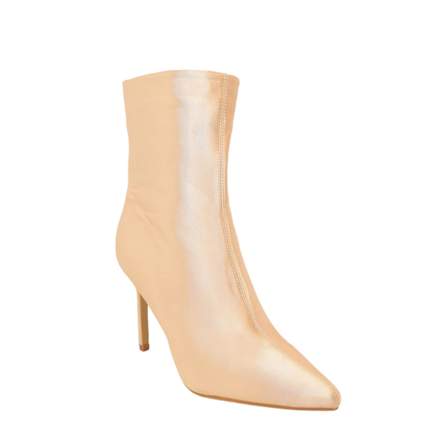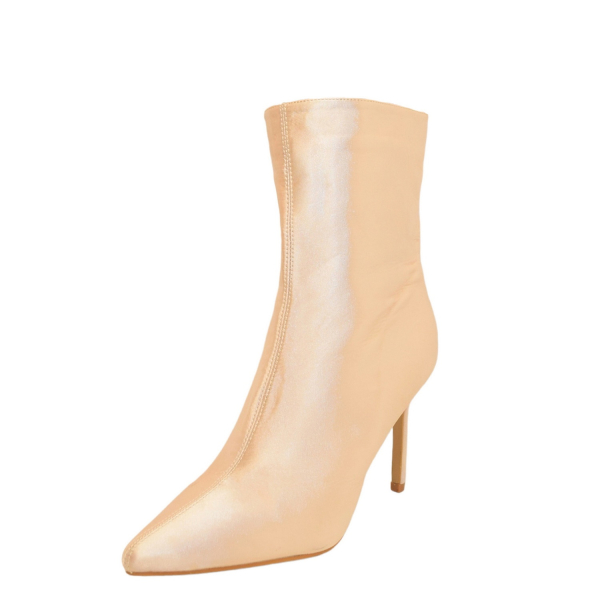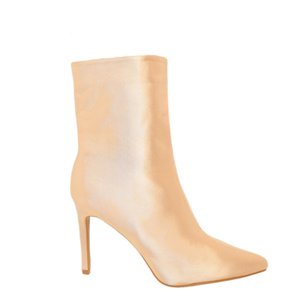 Ψηλοτάκουνο μποτάκι με σατέν υφή. Διαθέτει ψηλό τακούνι.