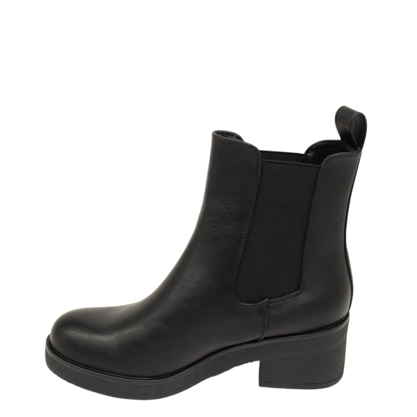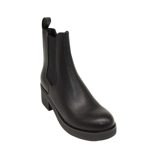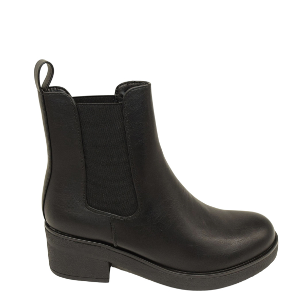 Μποτάκι με εφέ δέρματος. Διαθέτει χοντρό τακούνι.