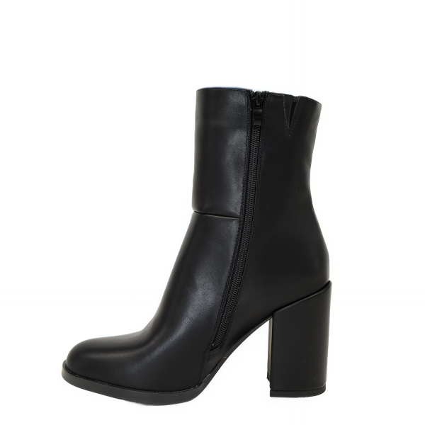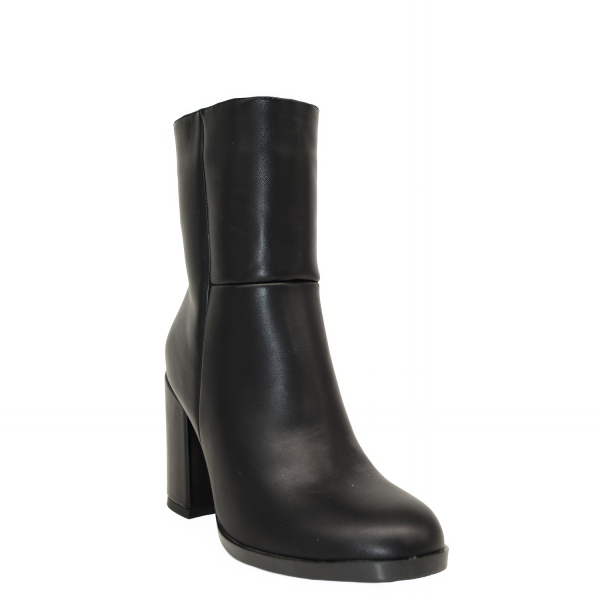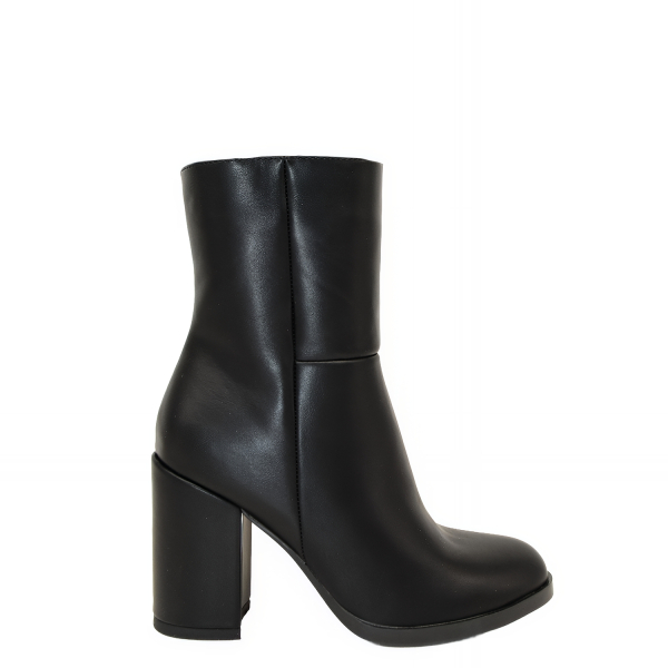 Μποτάκι με εφέ δερματίνης. Διαθέτει χοντρό τακούνι.