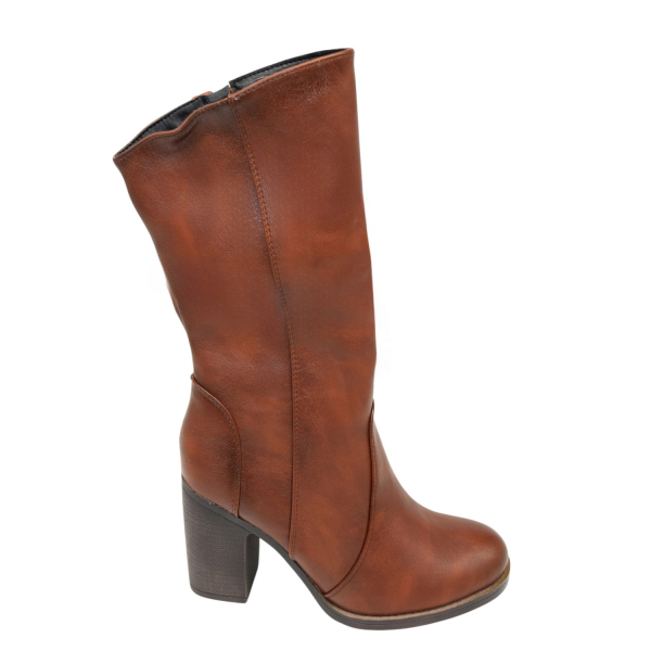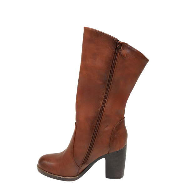 Μπότα με χοντρό τακούνι. Κλείνει με φερμουάρ.