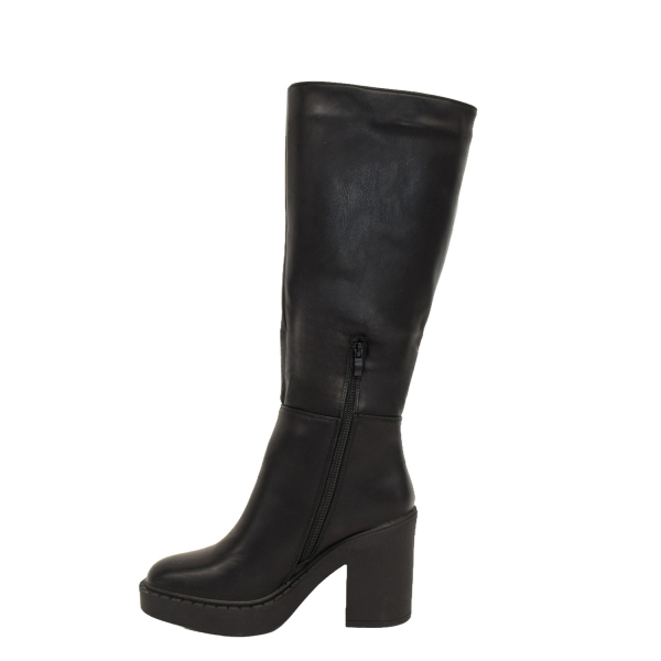 Μπότα με χοντρό τακούνι. Κλείνει με φερμουάρ.