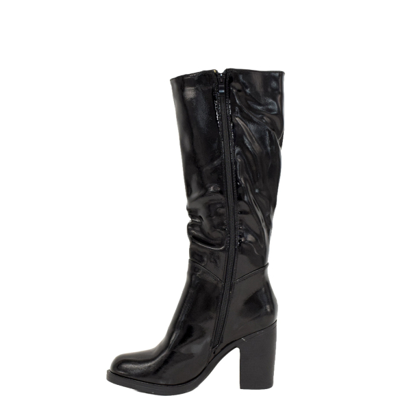 Μπότα με χοντρό τακούνι. Κλείνει με φερμουάρ.