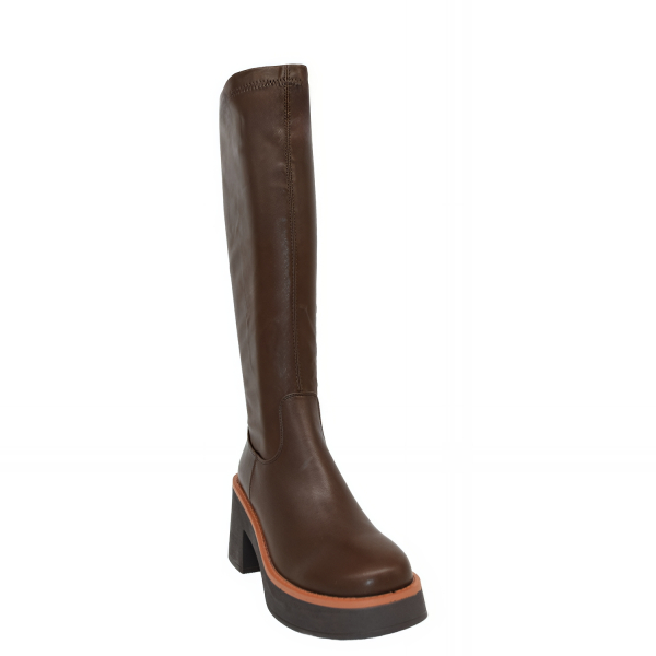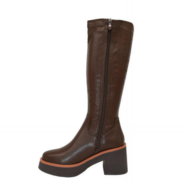 Μπότα με χοντρό τακούνι. Κλείνει με φερμουάρ.