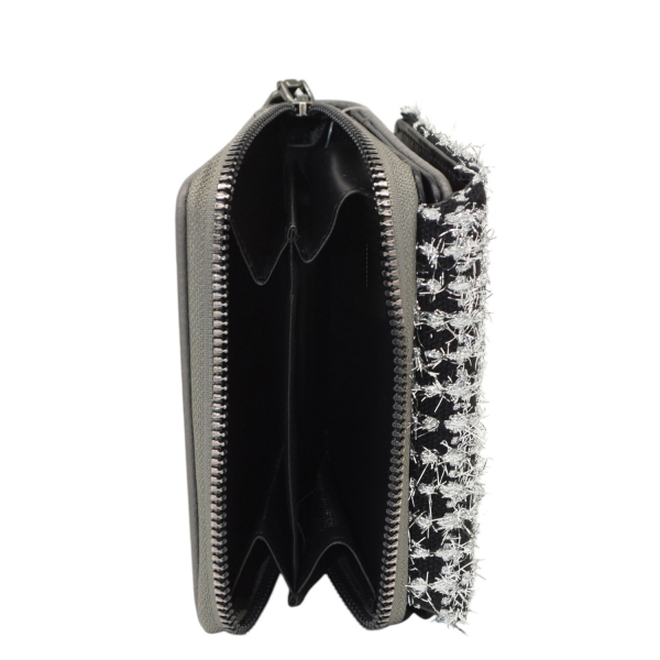 Wallet . It accommodates card slots and a coin pocket. Fastens with zipper.