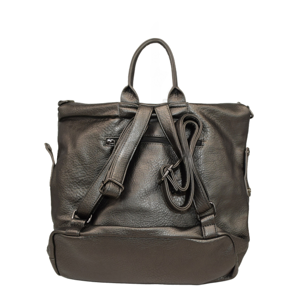 Backpack with adjustable straps. Close with zipper.