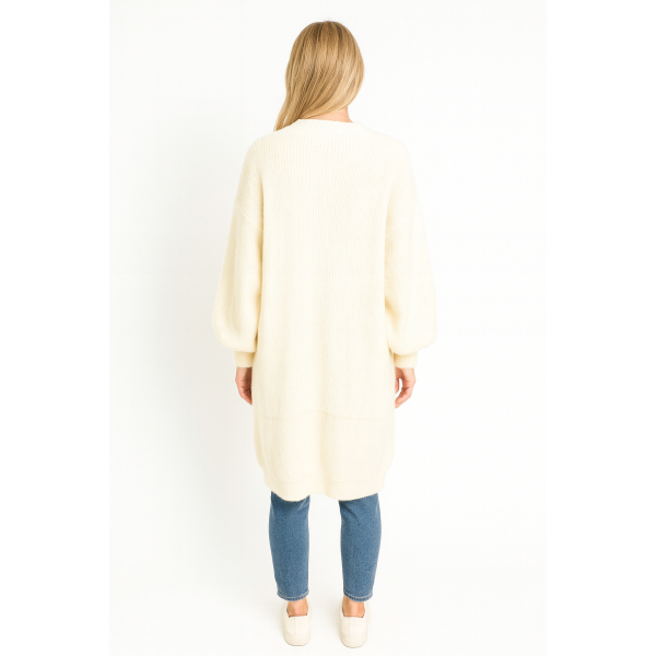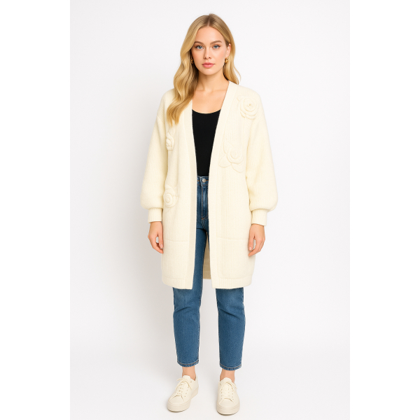 Long sleeve knit cardigan with decorative flowers . Regular fit.