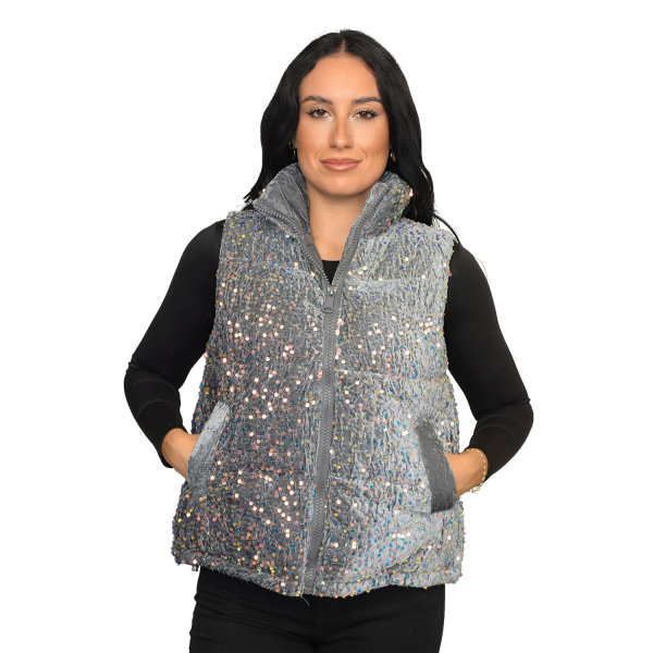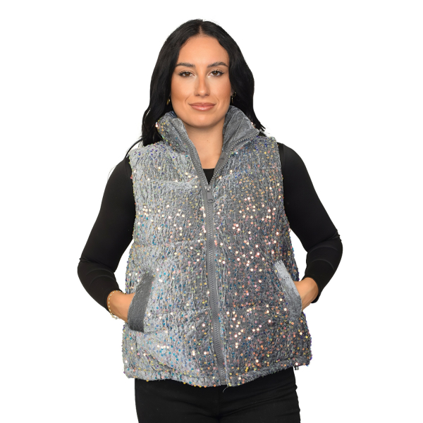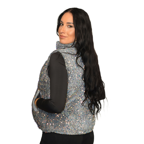 Sleeveless jacket with pockets. Front zipper closure. Regular fit.
