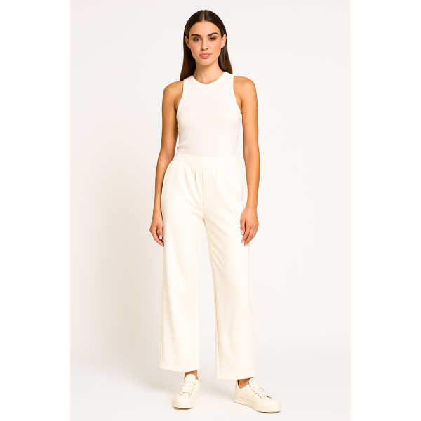 Fabric trousers with elasticated band. Regular fit.