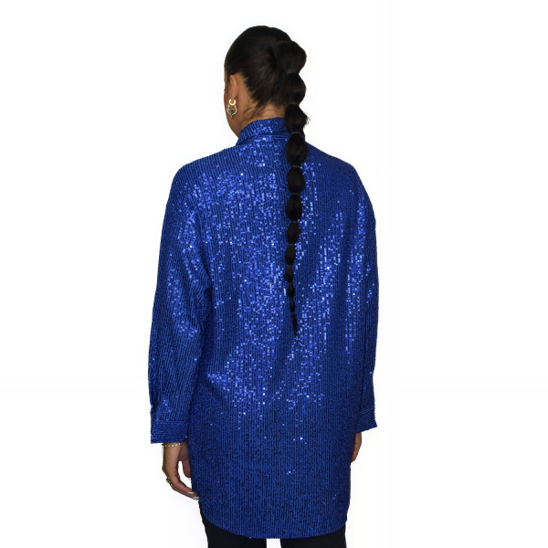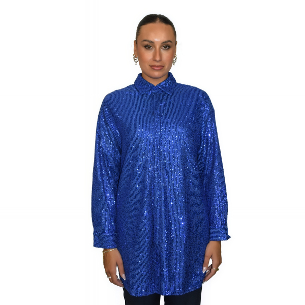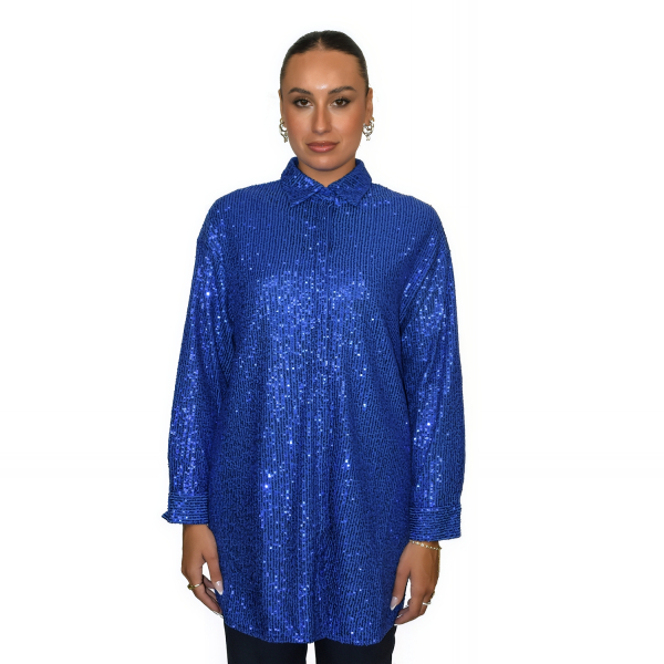 Long sleeve shirt with sequins. Front button closure. Regular fit.