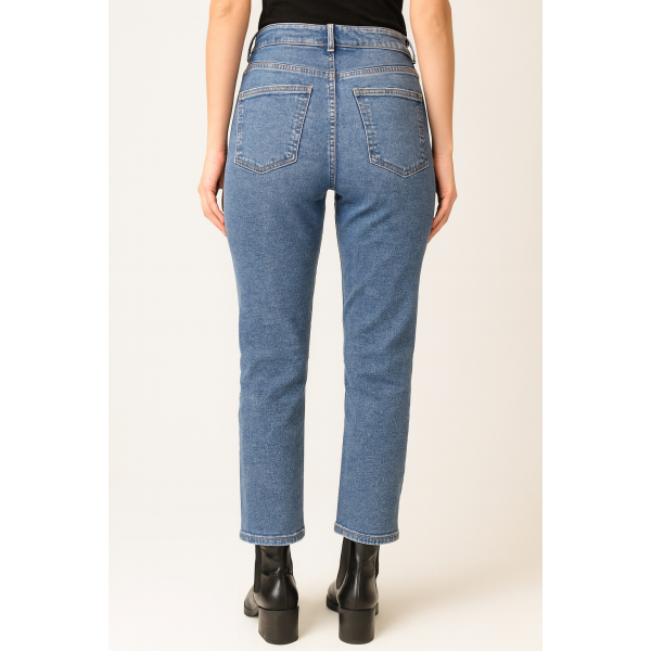 Denim trousers with pockets. Front button and zip closure. Regular fit.