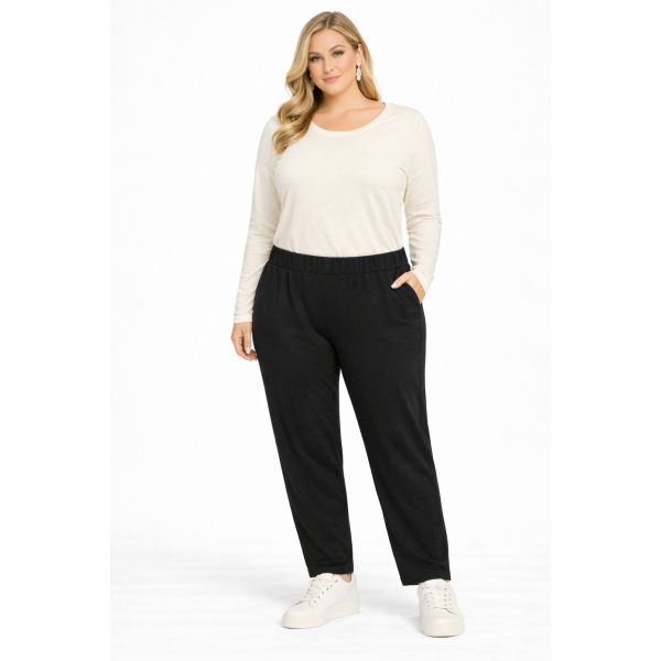 Plus size fabric trousers with elasticated waistband. Regular fit.