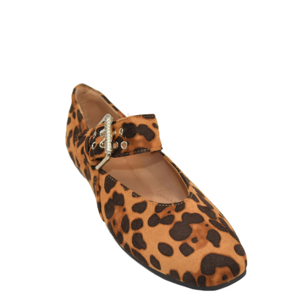 Ballet flat with adjustable strap.