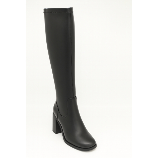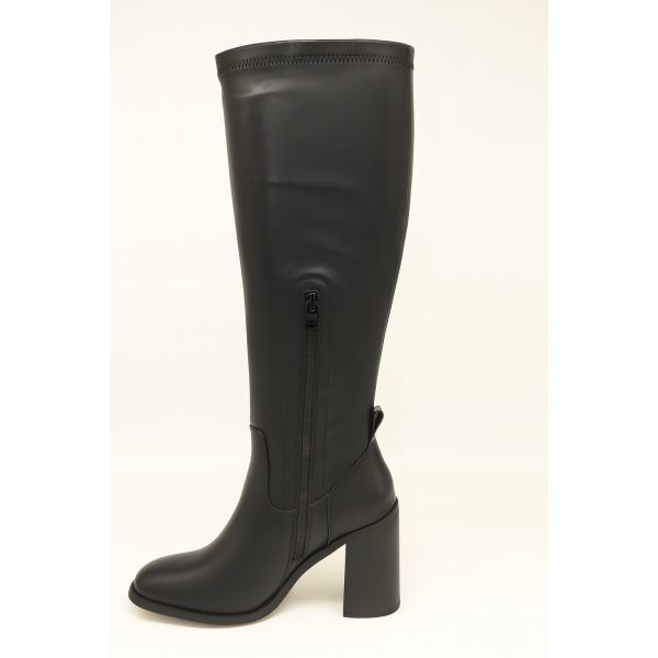Boots with block heel. Fastens with zipper.