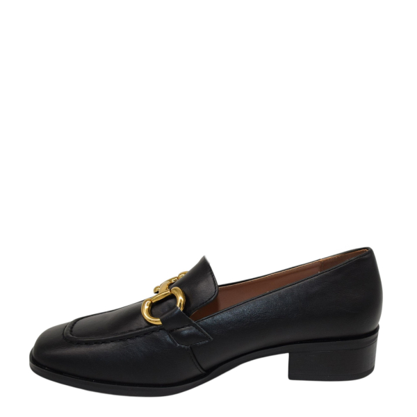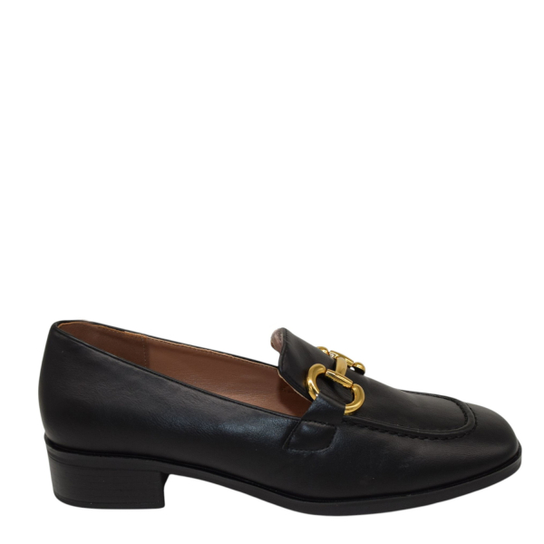 Moccasin with buckle.