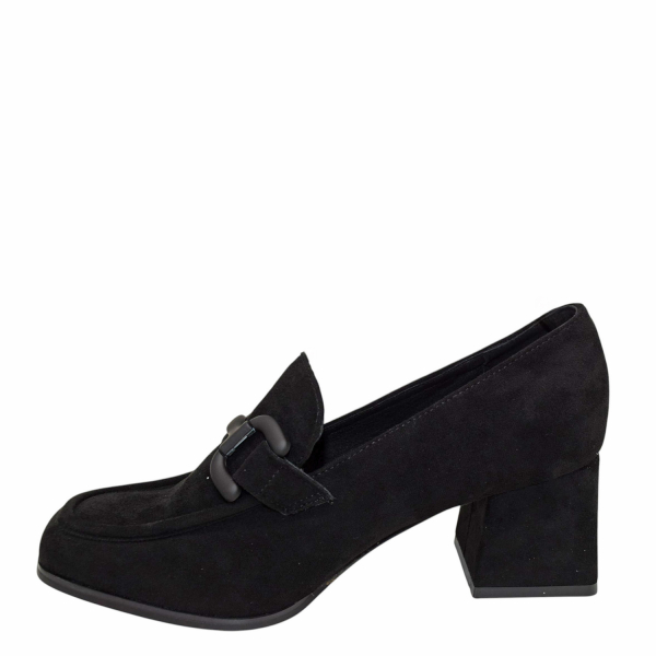 Pump suede with block heel.