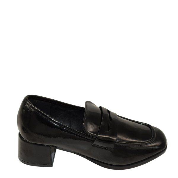 Patent pump with block heel.
