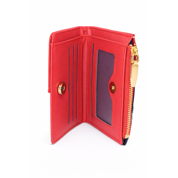 Wallet . It accommodates card slots and a coin pocket. Fastens with zipper.